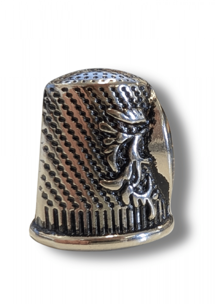 This decorative metal thimble has a newly designed burgandy and gold emblem to celebrate this occasion and comes in a small case.